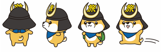 日本の歴史である戦国時代の象徴「兜」を被り、キャンピングカーで行く「旅」という文字を配置。