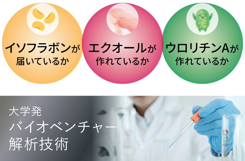 エクオールおよびウロリチンAはいずれも、腸内細菌の働きによって体内で生み出される成分です。